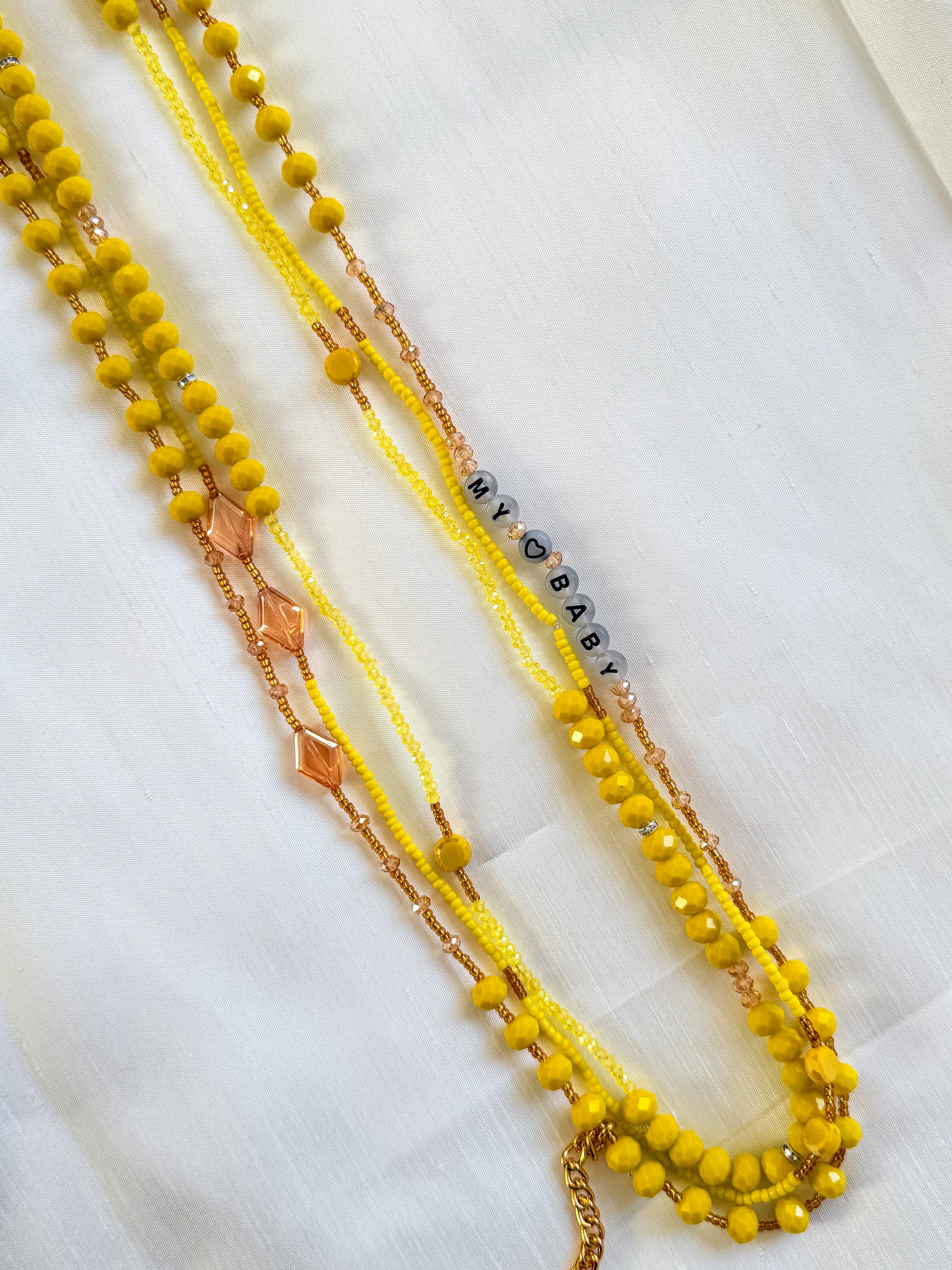 Un modèle lumineux et unique… avec ses perles lettres fluorescentes “MY BABY” qui brillent joliment dans le noir. Une pièce qui attire l’œil et sublime la taille.